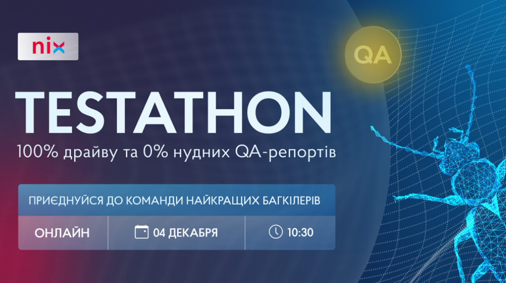 На тебе чекає 4 години безперервних командних обговорень та полювання за багами. Ти прокачаєшся в тестуванні Android-застосунків, будеш оперативно знаходити дефекти та писати якісні репорти, а також зможеш перейняти досвід фахівців NIX у тестуванні мобільних застосунків. Вривайся в команду найкращих багкілерів — не залишай багам жодного шансу! Коли: 4 грудня, з 10:30 до 18:30 Де: у чаті Discord Формат: онлайн Ми запрошуємо тестувальників рівня Junior+ та Middle.