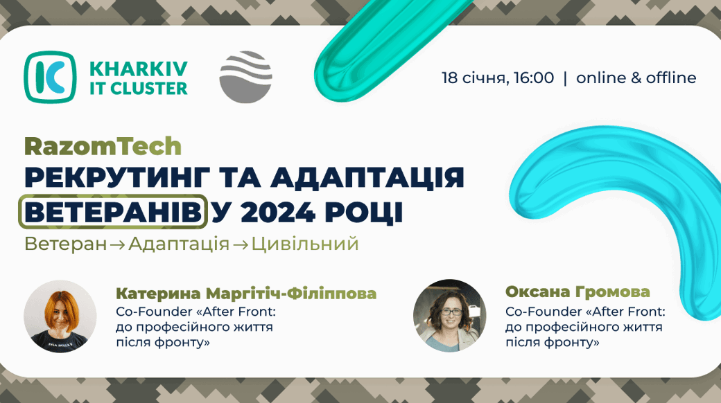 Kharkiv IT Cluster запрошує керівників, HR-спеціалістів, рекрутерів і всіх охочих на зустріч «Рекрутинг та адаптація ветеранів».