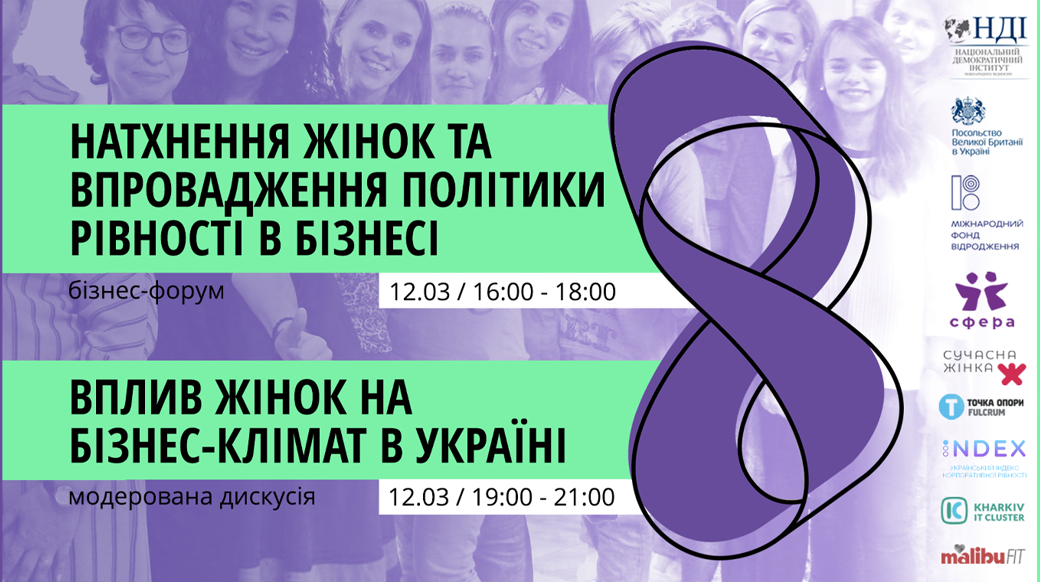 - дискусія «Вплив жінок на бізнес-клімат в Україні» — з 19:00 до 21:00, вхід вільний за попередньою реєстрацією.