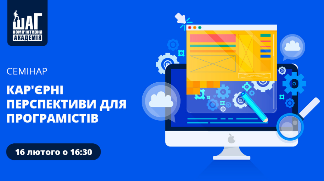 вулиця Малом'ясницька, 9/11 Скористайтеся унікальною можливістю та отримайте відповіді на всі ваші запитання. Кількість місць обмежена, зареєструйтесь, будь ласка, заздалегідь.Семінар від Академії «Шаг»: кар'єрні перспективи для програмістів
