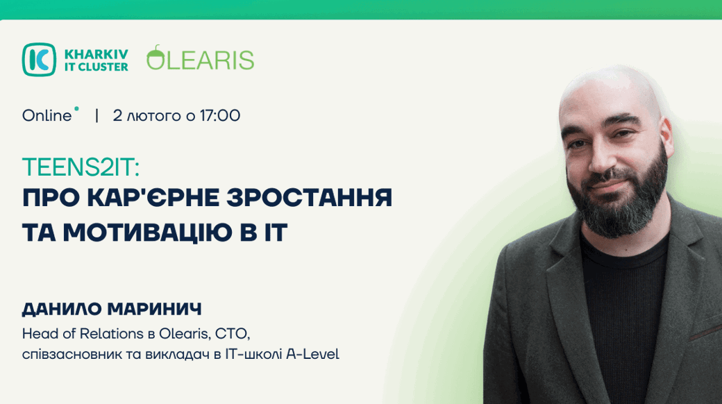 ☀️ Данило Маринич — Head of Relations в Olearis, CTO, співзасновник та викладач в IT-школі A-Level — розповість усе про кар’єрне зростання й мотивацію  в ІТ-галузі. Протягом свого шляху в ІТ Данило змінив близько 12 ІТ-компаній та спробував себе не в одній ІТ-професії. Наразі Данило займає керівну посаду, і здається нам, знає багато цікавих таємниць.  Маючи величезний досвід, він готовий поділитися ним з тими, хто лише починає свій шлях в ІТ!
