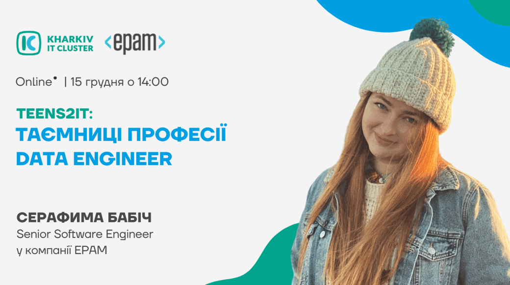 Чи ти вже визначився з майбутньою професією? А про професію Data Engineer чув?🤔 Є чудова можливість — нова зустріч Teens2IT 15.12 о 14:00, де разом з компанією EPAM розповімо тобі про Data Analytics and Visualization! 💻  🚀 Спікерка — Серафима Бабіч — Senior Software Engineer у компанії EPAM! Серафима має багатий досвід у Data Analytics and Visualization, а наразі займається розробкою звітів для глобальних бізнесів. Як бачиш, у Серафими можна дізнатись багато корисного й цікавого. Про що зможеш дізнатися на зустрічі? 👇 ⚡️ хто такий Data Engineer та що входить до списку його обов’язків; ⚡️ як стати таким спеціалістом; ⚡️ таємниці світу ІТ і безліч можливостей у цій сфері; ⚡️ що таке Data Analytics and Visualization; ⚡️ що насправді таке дані й  де їх шукати. Упевнені, що інтерв’ю буде захопливим і корисним. Ти точно дізнаєшся щось новеньке. А поки тримай першу пораду від Серафими: «Вивчай англійську вже зараз, вона тобі точно знадобиться!» 🙌 Тож радимо дослухатись, а також завітати на нашу зустріч, щоб дізнатись більше про нову професію! 👀 Участь безкоштовна за попередньою реєстрацією! ⏰ Коли? — 15.12 о 14:00 📗 Де: Online, ZOOM