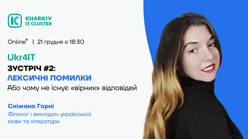 Айтівце, реєструйся на нову зустріч проєкту Ukr4IT від Kharkiv IT Cluster, щоб удосконалити свої мовленнєві навички українською! 💙💛