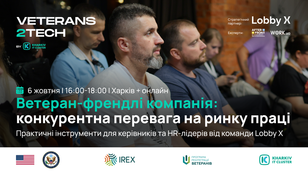 Саме про це — подія Kharkiv IT Cluster у межах програми Veterans2Tech. Ми об’єднуємо власників бізнесу, керівників та HR-лідерів, щоб відверто поговорити про те, як інтеграція ветеранів може стати перевагою на ринку праці.