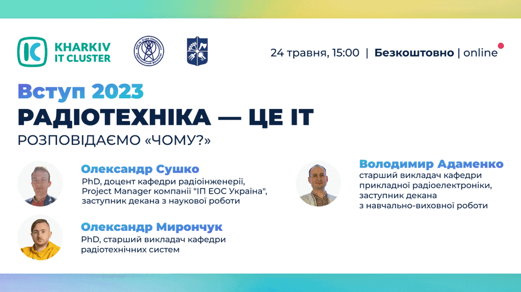 ✅ І щоб довести вам, що радіотехніка — це передовий напрямок в ІТ, Kharkiv IT Cluster спільно з викладачами Радіотехнічного факультету КПІ ім. Ігоря Сікорського запрошують узяти участь у вебінарі на тему: «Чому радіотехніка — це про ІТ?».