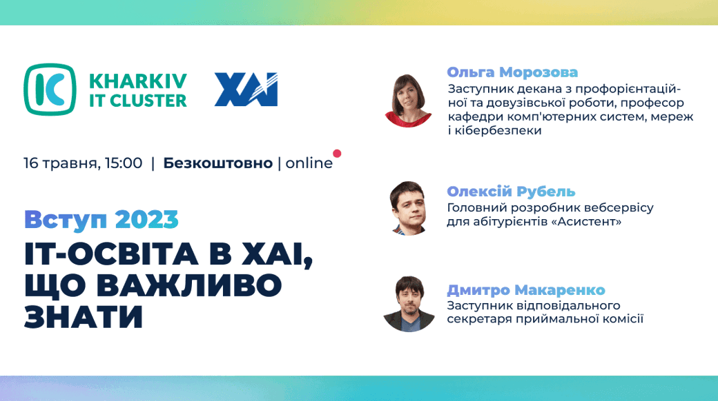 Запрошуємо 16 травня долучитися до вебінару з викладачами Національного аерокосмічного університету ім. М. Є. Жуковського «Харківський авіаційний інститут» на тему: «ІТ-освіта в ХАІ, що важливо знати».