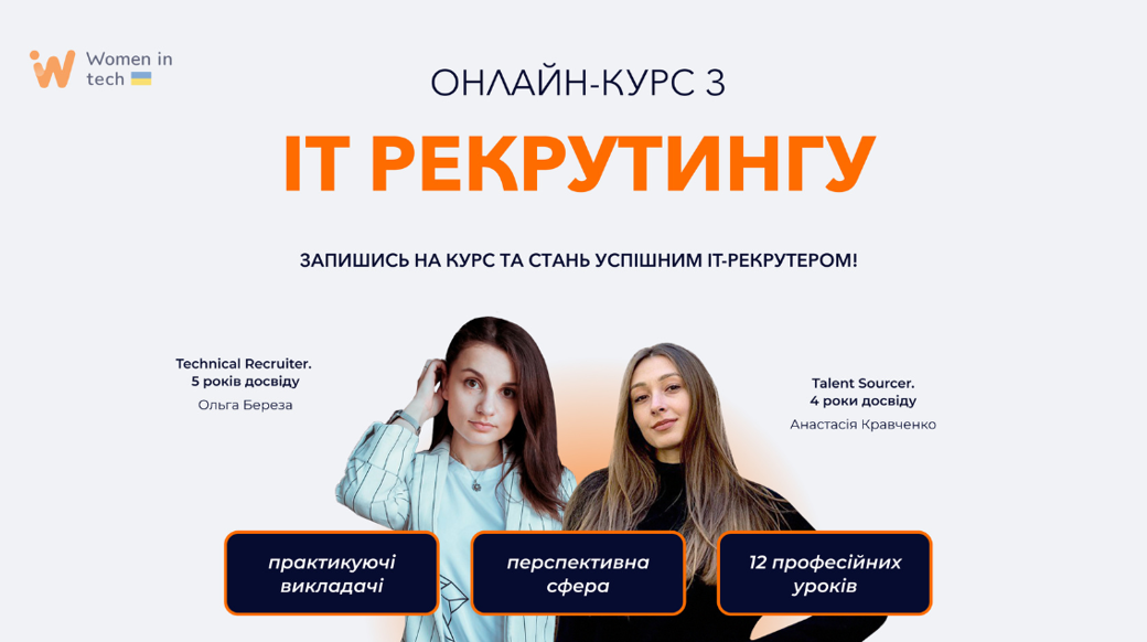 Тоді хочемо поділитись з вами чудовою новиною! Наші партнери WiT Ukraine представляють новий курс з IT РЕКРУТИНГУ!