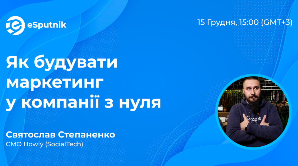 15 грудня о 15:00 (Київ) розкриватиметься тема: «Як будувати маркетинг у компанії з нуля»