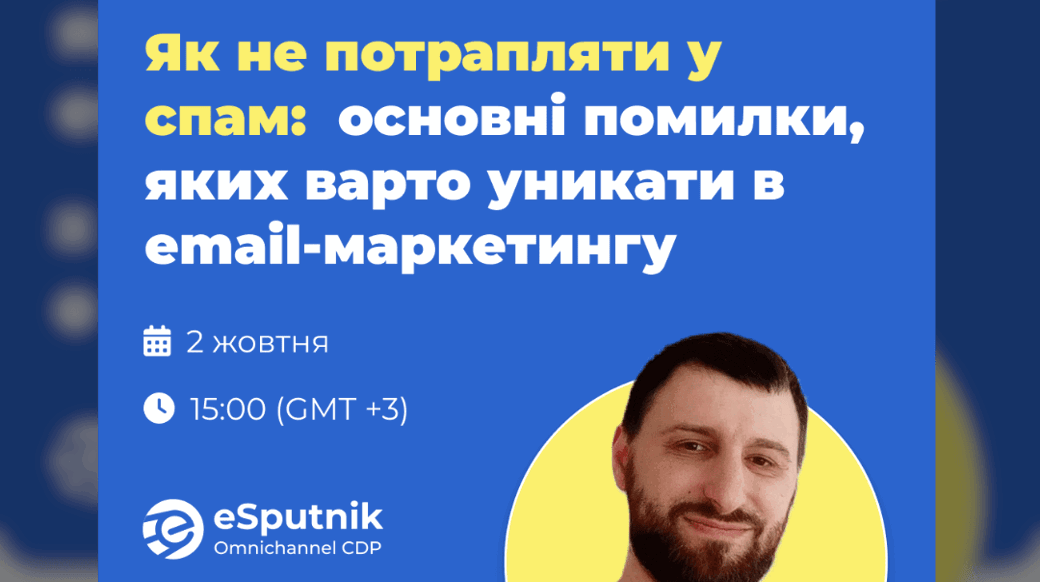 📅 2 жовтня о 15:00 на вебінарі омніканальної CDP eSputnik на тему: «Як не потрапляти у спам: основні помилки, яких варто уникати в email-маркетингу» ми розглянемо типові проблеми маркетологів із розсилками та методи їхнього вирішення. Спікер — Андрій Бочаров, Middle Specialist Marketer у Promodo, експерт з ecommerce та викладач Promodo Academy.