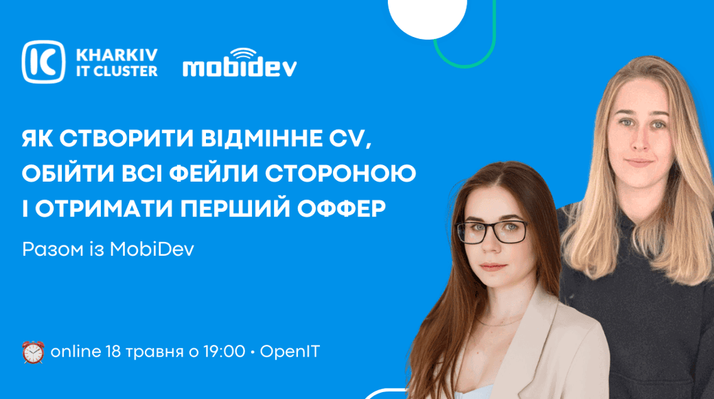 🔥 18 травня о 19:00 відбудеться вебінар на тему "OpenIT: Як створити відмінне CV, обійти всі фейли стороною і отримати перший job-offer?", разом з компанією MobiDev.