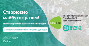 Читати повністюЗалишився менше ніж тиждень до наймасштабнішої освітньої події України — The 5th International Forum “NewEdu-2020: Tech Future in Focus”. 📍Спікерами форуму стануть експерти з ...
