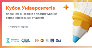 Читати повністю🏆 «Кубок Університетів» – це флешмоб-змагання з програмування серед студентів університетів міста Харкова! 🧨 Взяти участь у проекті можуть студенти будь-яких курсів будь-яких...