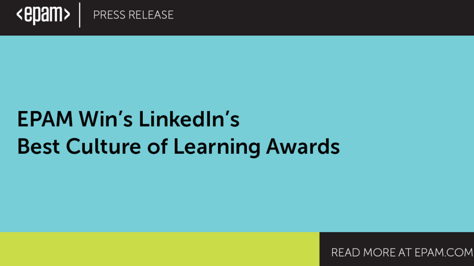 EPAM Systems, Inc. (NYSE: EPAM), a leading digital transformation services and product engineering company, today announced that it won the ‘Best Culture of Learning’ Award at the 2021 LinkedIn Talent Awards. The award recognizes EPAM’s investment in creating learning and development opportunities for employees to grow in their careers.