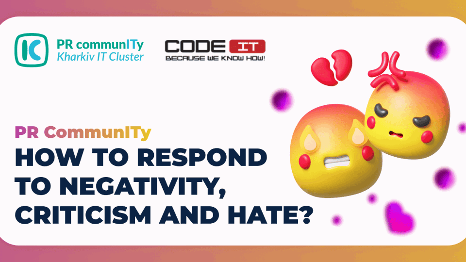 That is why every PR specialist, employer brand specialist, and external communication specialist should know what to do in case of a crisis. On July 11, Kharkiv IT Cluster gathered colleagues as part of PR CommuniTy, the main topic of the meeting was: «Negativity on the Internet: how to change it in your favor?». Anna Korzh, PR Manager of CodeIT, who has 6+ years of experience in business associations, government and educational institutions, healthtech, and IT, shared her experience, cases, and expertise. During the event, we talked about:📌 Crisis situations 📌 What does a hater want? 📌 Negative feedback, how to avoid or overcome it 📌 What not to do?