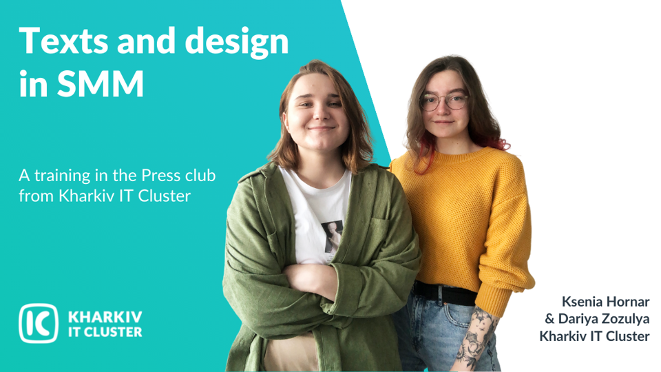 On April 28, Kharkiv IT Cluster’s team did a presentation “The importance of texts and design in SMM” in the Kharkiv press club. We gathered mostly first year students and other people interested in effective and quality development in the SMM.
