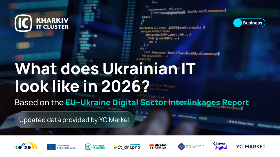 Kharkiv IT Cluster has analyzed the state of the Ukrainian IT market as of the end of Q1 2026. The analysis was conducted within the framework of the EU-Ukraine Digital Sector Interlinkages Report — the first systematic study that mapped 14 critical technological dependencies of the EU, identified by the European Commission, against the real competencies of the Ukrainian IT market.