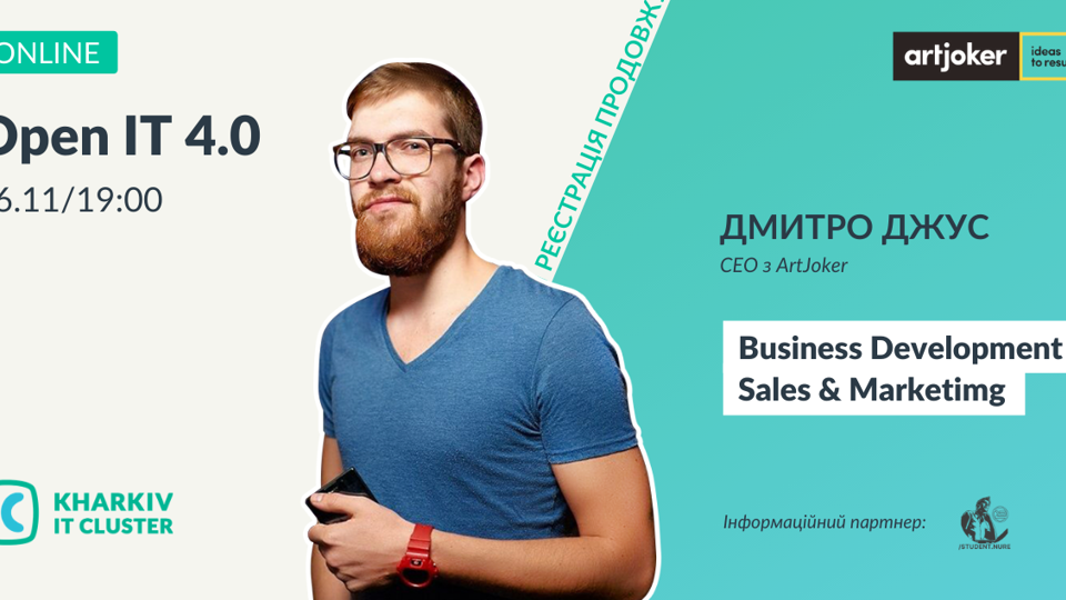 ⏰26.11 о 19:00 відбудеться безкоштовний вебінар проєкту Open IT із CEO Artjoker Дмитром Джусом на нашому YouTube каналі. Послухаємо про те: 🚀з чого почати новачку, аби потрапити до відділу маркетингу; 🚀який набір професійних якостей і знань повинен мати починаючий спеціаліст із маркетингу та продажів; 🚀як правильно будувати комунікацію всередині команди. Реєстрацію відкрито! Переходьте за посиланням нижче, реєструйтеся та чекайте на свою пошту листа з підтвердженням реєстрації перед подією! Чекаємо на вас на прокачку!🔥