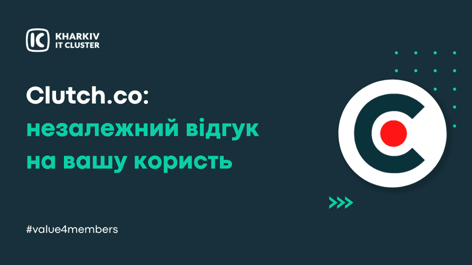 Clutch — це ідеальне місце для власників бізнесу, щоб знайти перевірених та надійних виконавців для виконання їхніх проєктів. Каталог містить перевірену інформацію, дані аналізу та справжні огляди сотень компаній у галузях реклами та маркетингу, веб-дизайну, маркетингу в пошукових системах, розробки програмного забезпечення, розробки веб- та мобільних додатків, а також IT-консалтингу з усього світу. Перевірені та об'єктивні відгуки клієнтів - це найважливіша перевага Clutch.co. Партнерська платформа Kharkiv IT Cluster у каталозі Clutch.co Clutch збирає відгуки клієнтів двома способами: онлайн і за телефоном. Зазвичай телефонні огляди використовуються для проєктів з бюджетом понад 25 000 доларів США. Телефонний дзвінок із Clutch зазвичай займає близько 15-20 хвилин, протягом яких аналітик збирає інформацію, ставить клієнту запитання. Clutch.co записує та транскрибує всі телефонні дзвінки. Після того, як аналітик закінчує транскрипцію, він редагує інтерв’ю, щоб зробити його досить коротким і чітким для публікації. Після випуску огляду аналітик надсилає звіт клієнту. Клієнт може попросити змінити свій відгук протягом наступних трьох днів. Процес подання онлайн-рецензії простіший, ніж телефонний дзвінок. Він ідеально підходить для проєктів з бюджетом до 25 000 доларів США. Clutch збирає онлайн-відгуки через форму зворотнього зв'язку. Також платформа має спеціальні форми огляду для кожної галузі та стандартні форми, які підходять для будь-якої спеціалізації компанії. Кожна компанія після реєстрації у каталозі отримує унікальне посилання в своєму профілі, яке вони можуть надсилати своїм клієнтам для збору відгуків. Клієнти також можуть оцінити свій досвід партнерства, використовуючи акаунт компанії в Clutch. Платформа Clutch.co оцінює будь-яку компанію та створює огляди за чотирма критеріями: