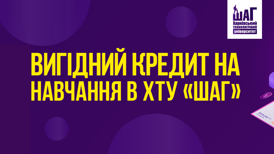 Державний кредит на навчання в Харківському технологічному університеті “ШАГ” — це реальний шанс отримати якісну вищу ІТ-освіту, якщо раніше на це бракувало коштів. Подробиці про отримання кредиту. До кінця вступної кампанії залишилось не так багато часу. Закликаємо абітурієнтів використати всі шанси!