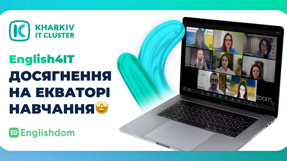 23 жовтня 2023 року Kharkiv IT Cluster разом із провідною школою англійської Englishdom запустили проект English4IT 💻🗽. Половина курсу вже позаду, тож що опанували учасники за цей час?