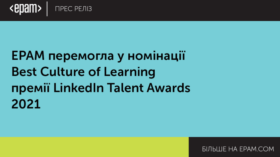 Окрім величезної кількості внутрішніх навчальних програм, усі спеціалісти EPAM мають необмежений доступ до тисяч онлайн-курсів платформи «LinkedIn Learning»: від технічних та інженерних дисциплін до навчання у сферах менеджменту та управління. Кожен спеціаліст компанії може створити свій індивідуальний профіль навчання, який буде відповідати цілям професійного зростання та розвитку особистісних якостей. Близько 32 600 фахівців EPAM активували обліковий запис на платформі «LinkedIn Learning». 68% із них регулярно переглядають відеоконтент. У середньому один інженер проходить близько 34 відео-уроків на місяць і проводить за навчанням 1,7 години. Премія «LinkedIn Talent Awards» говорить про успіх команди талановитих фахівців, які досягли позитивних результатів, використовуючи рішення «LinkedIn Talent Solutions». Критерії номінації «Best Culture of Learning» ґрунтуються на активації навчальних ресурсів та безперервному процесі навчання в організації, враховуючи відсоток колег, які навчаються повторно. EPAM визнана найкращою у демонстрації культури навчання серед організацій із більш ніж 10 000 спеціалістами на LinkedIn. Дізнатися більше про кар’єрні можливості з EPAM можна за даним посиланням.Про EPAM Systems