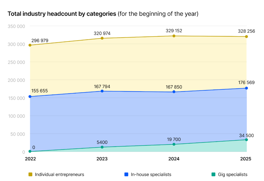 Кількість спеціалістів ІТ-галузі за категоріями (за даними YCMarket)