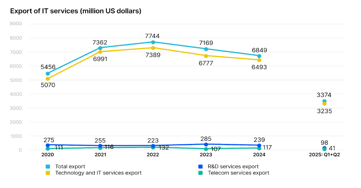 Динаміка експорту ІТ-послуг України 2020-2025 (за даними НБУ)