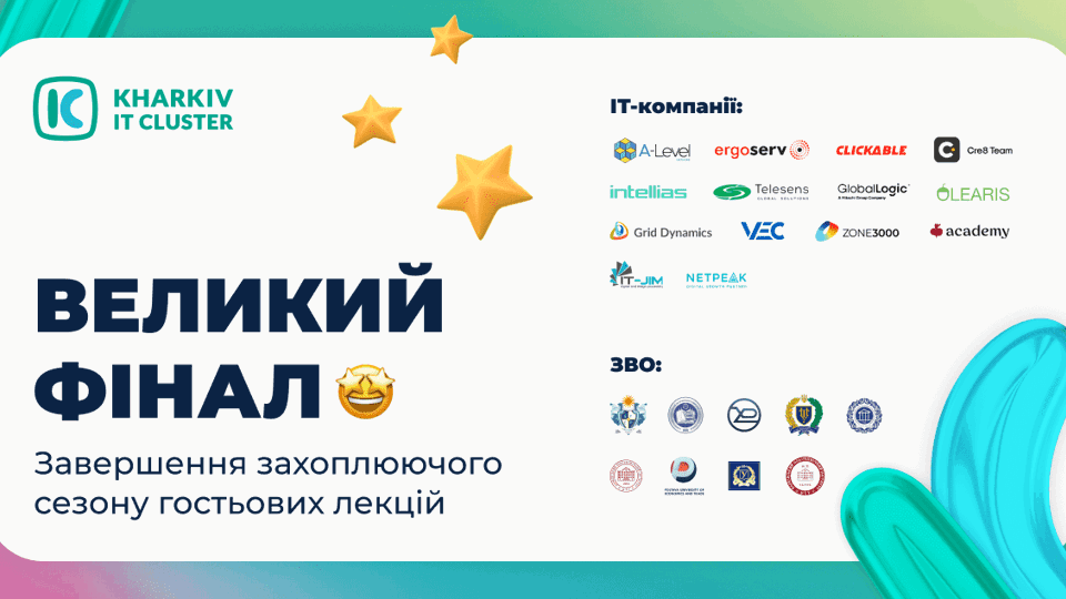 🎉 Kharkiv IT Cluster з радістю підводить підсумки про успішне завершення проєкту Guest Edu в рамках II семестру освітнього сезону 2022-2023! Цей сезон став одночасно тяжким та захопливим, був повним цікавих інсайтів, натхнення та професійного зростання студентами провідних університетів Харкова та України. Завдяки гостьовим лекціям студенти мали можливість глибше зрозуміти найсучасніші тренди та виклики, з якими зіштовхується сучасний світ IT. Від розширеної реальності до машинного навчання, від маркетингу до проєктного менеджменту — кожна лекція була справжнім джерелом знань, яке допомагало нам розширити наші горизонти та підготувати себе до майбутніх викликів. Було багато перешкод на шляху, але незважаючи на них Kharkiv IT Cluster зміг провести 16 онлайн-вебінарів разом із компаніями-партнерами A-Level, Ergoserv, Clickable agency, Cre8 Team, Intellias, Telesens, GlobalLogic, Olearis, Grid Dynamics , VEC-UA, Zone3000, Beetroot Academy, It-Jim, Netpeak Group. 👩‍💻 До проведених 16 зустрічей доєднались понад 700 студентів технічних спеціальностей України з 9 закладів вищої освіти України, серед яких: 1. Приватний заклад вищої освіти «Харківський технологічний університет «ШАГ» 2. Харківський національний економічний університет імені Семена Кузнеця 3. Харківський національний університет радіоелектроніки 4. Національний університет «Полтавська політехніка імені Юрія Кондратюка» 5. Харківський національний університет міського господарства імені О.М. Бекетова 6. Національний технічний університет «Харківський політехнічний інститут» 7. Полтавський університет економіки і торгівлі 8. Харківський національний університет імені В.Н. Каразіна 9. ВСП Харківський комп'ютерно-технологічний фаховий коледж Національного технічного університету «Харківський політехнічний інститут»