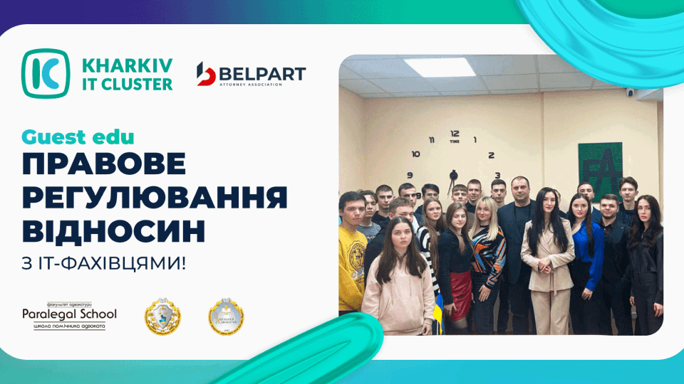 Харківський IT Кластер щиро висловлює свою вдячність команді Адвокатського об'єднання «BELPART» і факультету адвокатури Національного юридичного університету імені Ярослава Мудрого за продуктивну співпрацю й активну участь студентів, які прагнуть до особистого росту й поглиблення своїх компетенцій.Підпишись на наш телеграм канал, щоб бути у курсі вступної кампанії 2024