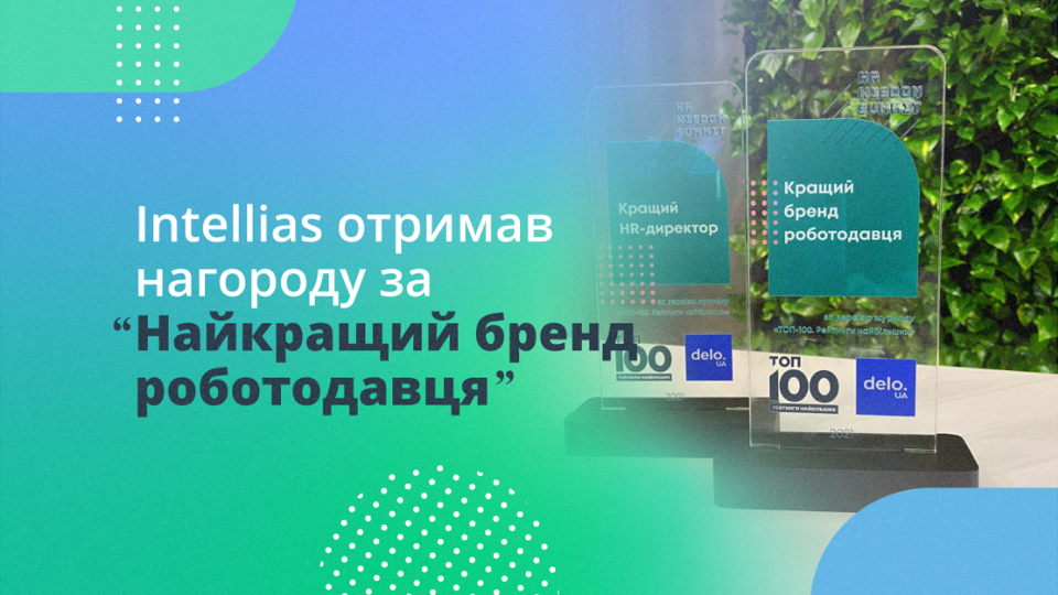 Intellias отримав нагороду за «Найкращий бренд роботодавця» За версією щорічного рейтингу журналу "ТОП-100. Рейтинги найбільших" компанія Intellias увійшла у перелік найкращих роботодавців серед найбільших компаній України. Загалом експертне журі оцінювало понад 150 компаній-претендентів. Кожного учасника оцінювали шляхом анкетування. 30 фіналістів визначало незалежне журі за кількома спеціальними критеріями, серед яких: рівень компенсації в компанії, реалізація політики різноманіття та інклюзії, лояльність співробітників до бренду роботодавця тощо. Також журі оцінювало систему кар’єрного зростання та підходи до розвитку персоналу. Важливим критерієм відбору були цінності компанії та її репутація на ринку.