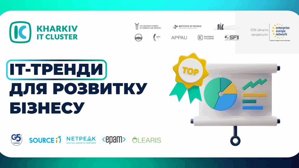 За час нашого партнерства ми реалізували кілька міжнародних івентів, основна мета яких налогодити міжнародні trusted-зв’язки українського ІТ з партнерами і клієнтами з різних куточків світу. У травні Kharkiv IT Cluster та консорціум EEN створили серію вебінарів з діджиталізації. Мета ініціативи — відкрити найкращі практики ІТ-сфери для бізнесів і підприємств інших напрямів, обмінятись досвідом з колегами і занурити їх у світ діджитал — показати варіанти , як можна оптимізувати щоденні задачі й роботу малого і середнього бізнесу за допомогою нових інструментів і підходів. Серія вебінарів охопила три теми:📌 Ефективне планування та розподіл задач в проєкті. Agile, Scrum, Kanban, Jira; 📌 Соціальні мережі для бізнесу; 📌 Штучний інтелект: для себе, для бізнесу, для команди.