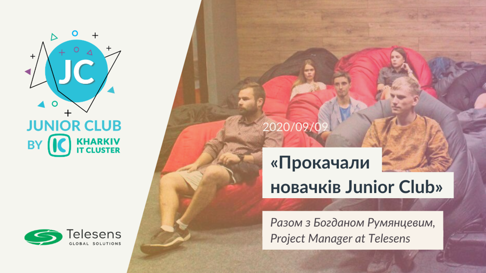 Спікером виступив Богдан Румянцев, Project Manager у компанії Telesens. Розмовляли про методи керування проєктами, про Agile і Scrum, про те, хто такий менеджер проєктів, і що потрібно знати, щоб досягти успіху в професії. Ми також не забули про практику! Команда Telesens підготувала інтерактив для учасників з розробки плану та макетів власного проєкту, а також круті призи, найактивнішим і креативним учасникам воркшопу! Традиційно наприкінці івенту була сесія Q&A, на якій Богдан відповів на запитання учасників і поділився власним досвідом. Дякуємо компанії Telesens за участь у наших студентських проєктах і за ініціативу в розвиненні IT-галузі нашої країни.Трішки про проєкт. Що ж таке Junior Club?