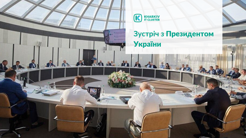 2 вересня в Харкові відбулася зустріч представників бізнесу з Президентом України Володимиром Зеленським у приміщенні Наукової бібліотеки Національного юридичного університету імені Ярослава Мудрого. IT-галузь у Харківському регіоні представляв Kharkiv IT Cluster, де доповів про своє бачення ключових точок зростання для IT-бізнесу в Харківському регіоні й Україні в цілому. Володимир Зеленський прокоментував зустріч із представниками Харківського IT Кластера: «IT в Україні — це золота жила. У нас багато талановитих молодих людей із математичним складом мислення. У деяких країнах є газ чи нафта, а в нас є IT. Тому у влади дуже лояльне ставлення до айтішників». Представниками від Kharkiv IT Cluster виступили член Наглядової ради Роман Катеринчик та директорка організації Ольга Шаповал. Роман Катеринчик від імені Харківського IT Кластера доніс інформацію зокрема з двох ключових проблемних питань.