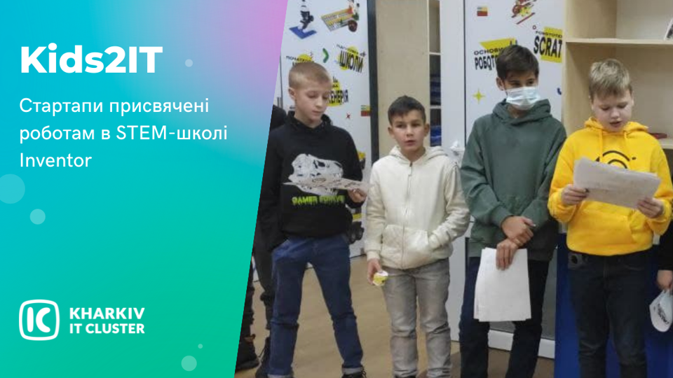 5 грудня Kharkiv IT Cluster провів чергову гру. Цього разу команду Kids2IT запросили до STEM-школи Inventor. Важливою особливістю гри було те, що ідеї учнів були пов'язані з роботами у той чи інший спосіб. І це не дивно, адже робототехніка — основний орієнтир у цій школі. Діти вважають, що за роботами майбутнє людства. Ідея стартапу першої команди учнів — робот-помічник «Куля». Роботи-помічники вже давно не новинка. Але перша команда учнів об’єднала хатнього кібер-працівника з охороною. Цей робот може як прибрати оселю, так і забезпечити безпеку в домі. Тому не дарма цього «охоронця» назвали «куля». Але і це не все. Якщо вам стало сумно, робот «Куля» зможе розважити вас та ваших дітей піснями чи жартами. «Браслет-телепорт» презентувала друга група учнів. Ідея проста — власнику такого браслета треба лише подумати про місце, куди він хоче потрапити. Далі телепорт зробить все за нього. Над деталями реалізації цього проєкту діти пообіцяли працювати й далі. Kharkiv IT Cluster радий знайомству з учнями STEM-школи Inventor та бажає наснаги у вивченні робототехніки! Запрошуємо приєднатися до гри Kids2IT учнів та вчителів 8-11 шкіл міста Харкова. Заявку залишити можна за посиланням