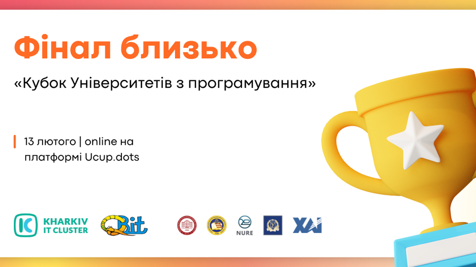 🏆 «Кубок Університетів» – флешмоб-змагання з програмування серед студентів університетів Харкова! Це міська ініціатива Молодіжного наукового товариства Q-BIT та Kharkiv IT Cluster, що проводиться за підтримки компанії Near!