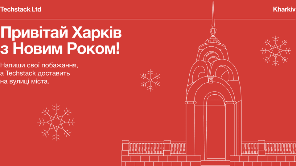 Цього разу ми не зможемо зробити багато речей, які зазвичай робили на Новий рік. Але ми точно здатні передати нашому місту побажання, слова підтримки та освідчення в любові. Techstack доставить їх на вулиці та у заклади улюбленого міста! Щоб долучитися: ☑️ переходь за посиланням; ☑️ пиши все, що хочеш побажати Харкову; ☑️ чекай на появу твоїх слів на вулицях міста та улюблених закладах. За кожний отриманий лист Techstack передаватиме 100 гривень в благодійний фонд “Волонтерска”. Усі гроші підуть на допомогу деокупованим селищам Харківської області, які зазнали значних руйнувань. Долучайся та підтримуй Харків у важкі часи!
