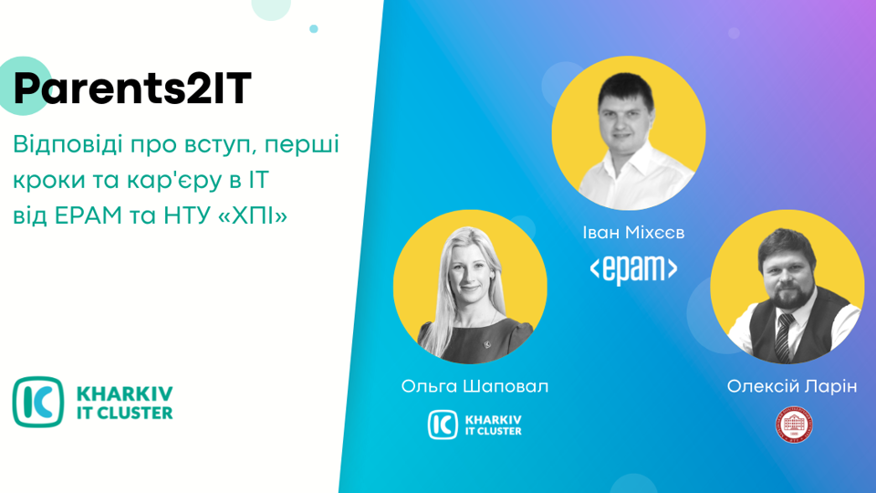 Представники ЕРАМ наполегливо рекомендують отримати вищу ІТ-освіту, а також застерігають студентів — не починати працювати раніше, ніж з третього курсу. Студент третього курсу вже добре ознайомлений із базою і поглиблено вивчає якусь конкретну спеціальність, що робить його більш компетентним.    «Важливо пам'ятати, що ЗВО мають час, фахівців і ресурси для того, щоб надати фундаментальні дисципліни, такі як Алгоритмізація та програмування, Інформатика, Вища математика, Теорія алгоритмів, База даних, Web- технології, Web-розробка і так далі. Цей список можна продовжувати досить довго і це все входить майже в кожну програму ІТ-галузі. Вища освіта важлива та необхідно приділити певний час, щоб її отримати», Іван Міхєєв, керівник навчальних програм ЕРАМ на сході України. EPAM University Тож під час вебінару, експерти з Kharkiv IT Cluster, EPAM та НТУ «ХПІ» надали поради та відповіді на питання, які мали батьки майбутніх абітурієнтів та абітурієнти особисто.   Нагадаємо, що Parents2IT — унікальний проєкт для батьків, які хочуть допомогти підліткам зробити свідомий вибір професії! Серед експертів — представники ІТ-компаній та провідних університетів Харкова.   Чекаємо вас на наступній зустрічі, яка пройде вже 15 березня!