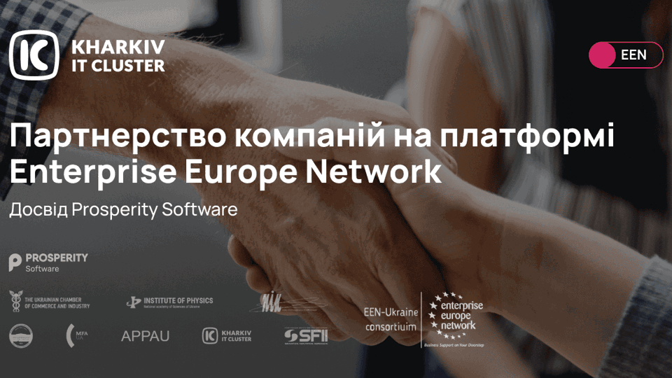 - Супровід Kharkiv IT Cluster на шляху до партнерства, що включає в себе допомогу в налагодженні контактів та розширення можливостей для співпраці.«Менеджерка Харківського ІТ Кластеру активно допомагала нам з кожним етапом використання Enterprise Europe Network. Це значно полегшило та прискорило процес партнерства», — каже Chief Executive Officer у Prosperity Software, Ілля Лавошник. Отже, завдяки використанню можливостей платформи EEN, компанія Prosperity Software змогла започаткувати партнерство з європейською компанією. Це — яскравий приклад того, як українські IT-компанії можуть просуватися на міжнародні ринки навіть у складних умовах сучасності.