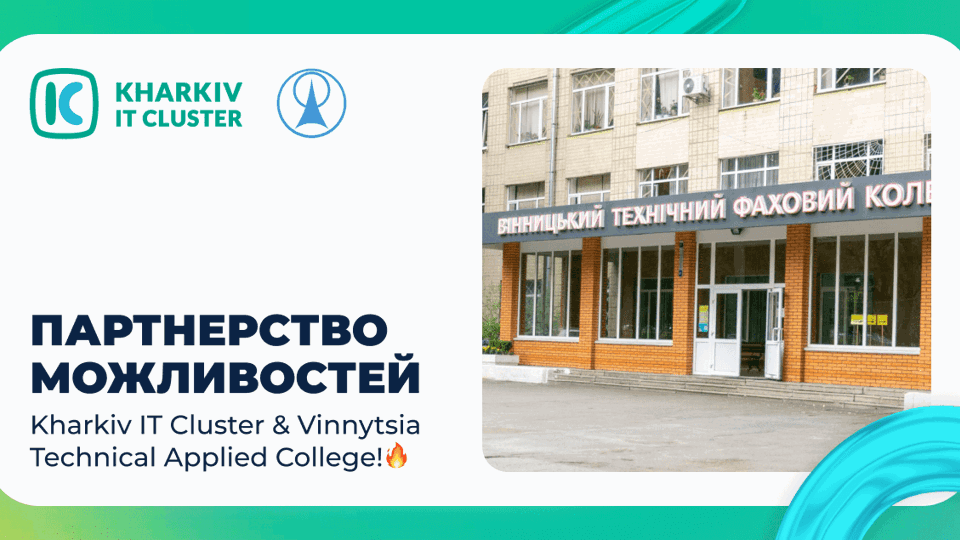 Вінницький технічний фаховий коледж/Vinnytsia Technical Applied College визнаний як один із найбільших і найавторитетніших закладів фахової передвищої освіти на Вінниччині. У цьому навчальному закладі готують висококваліфікованих фахівців, які здатні відповідати потребам підприємств та організацій регіону. Ця установа особливо славетна своєю підготовкою фахівців в галузі інформаційних технологій та інженерії, що робить її ідеальним партнером для Kharkiv IT Cluster.Kharkiv IT Cluster — стейкголдер розвитку IT-індустрії