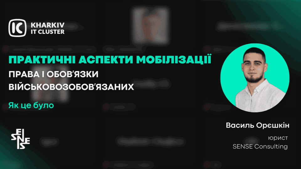 Сьогодні ІТ-ком'юніті – це економічний фронт, завдяки якому Харківщина продовжує функціонувати попри війну, тому для кожного співробітника ІТ-компанії важливо знати свої права та обов'язки в сучасних умовах. ІТ-сфера зараз є однією з найбільш стабільних, тож в інтересах кожного зберегти її такою. Близько 7% ІТ-фахівців пішли до лав ЗСУ, інші – продовжують працювати, донатити, допомагати армії та волонтерити. Сьогодні представники спільноти Харківського ІТ Кластера – понад 190 учасників та партнерів – розмістилися по всій Україні. Переважна більшість з них – це чоловіки призовного віку. Тож в комунікаціях з учасниками кластеру команда звернула увагу, що багато з айтівців не знають, які вони мають зараз права та обов'язки, бо з настанням воєнного стану багато що змінилося. Щоб надати інформаційну допомогу ІТ-спеціалістам, Kharkiv IT Cluster 17 червня організував онлайн-івент, присвячений практичним аспектам мобілізації. Експертом на зустрічі був Василь Орєшкін, юрист компанії SENSE Consulting. Спікер детально розповів про межі прав та обов'язків ІТ-фахівців, що треба робити та як юристи не радять себе поводити. Василь проінформував аудиторію з таких питань:- 👉 Хто з нас військовозобовʼязаний і може бути призваний