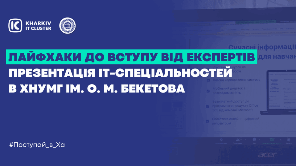 Сергій Планковський, завідувач кафедри АКІТ ХНУМГ ім. О. М. Бекетова, доктор технічних наук, професор, презентував відео-візитку кафедри, розповів переваги навчання на 151 спеціальності та про те, що буде затребувано після війни. «Ми чекаємо на вас навчатися та працювати з найсучаснішим обладнанням із можливістю отримання дуальної освіти з оплачуваним працевлаштуванням і можливістю навчання закордоном», — закликає Сергій. Володимир Бредіхін, доцент кафедри комп’ютерних наук та інформаційних технологій ХНУМГ ім. О. М. Бекетова, кандидат технічних наук, доцент, розповів про те, чим відрізняються спеціальності 122 «Комп’ютерні науки» та 126 «Інформаційні системи і технології»: «Отримуючи 122 спеціальність, ви маєте можливість стати бізнес-аналітиком, системним адміністратором, веб-дизайнером, веб-програмістом, фахівцем з оптимізації бізнес-процесів і проєктувальником інформаційних систем. А за умови отримання диплому за 126 спеціальністю, ви зможете працювати тестувальником, розробником, керівником проєктів, системним та програмним архітектором». У кінці зустрічі викладачі поділилися стандартами навчання та охоче запросили вступати до ХНУМГ ім О.М. Бекетова. Дізналася детальніше у записі на нашому YouTube каналі:Kharkiv IT Cluster бажає абітурієнтам успіхів у складанні НМТ та вступу до омріяного закладу вищої освіти!