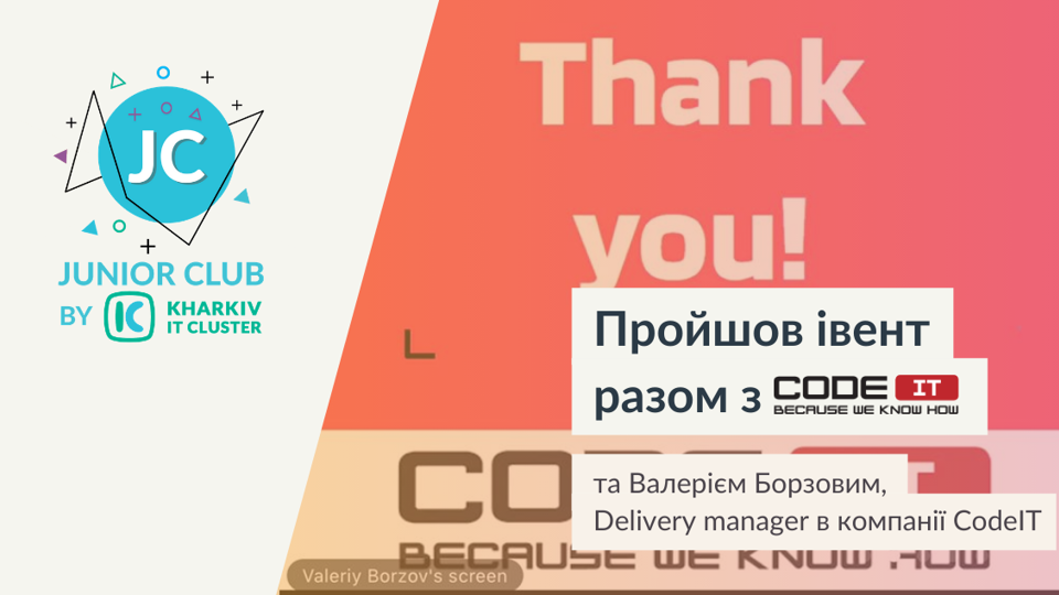 Дякуємо компанії CodeIT, що активно бере участь в освітніх проєктах Kharkiv IT Cluster.