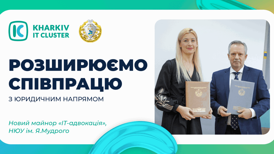 Студенти освітньої програми «Право» НЮУ ім. Я. Мудрого в межах підписаного меморандуму про співпрацю, активно долучаються до участі в проєктах і використовують можливості, які надає співпраця з Харківським ІТ Кластером. Здобувачі беруть участь в інкубаційній програмі Boot Camp, яка надає можливість працювати над реальними проєктами у сфері інформаційних технологій, а також регулярно відвідують гостьові лекції від експертів із юридичних компаній-партнерів Харківського ІТ Кластера й проходять стажування на базі компаній спільноти.Цінна співпраця освіти й бізнеса