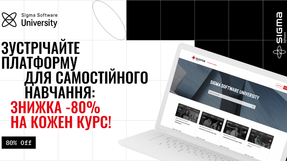 А з нагоди запуску Sigma Software University пропонує 80% ЗНИЖКИ на всі курси для перших користувачів платформи!