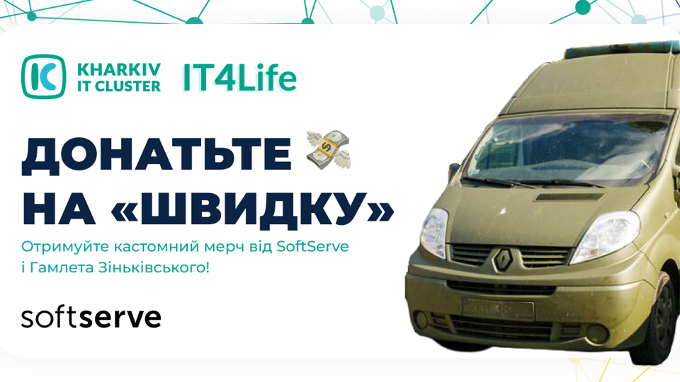 Днями харківський центр розробки SoftServe відзначив своє десятиріччя! На честь цього компанія разом зі своїм Благодійним Фондом "Відкриті Очі" в рамках проєкту Drive for Life розпочинає новий збір на карету швидкої, що буде рятувати життя на харківському напрямку. Серед тих, хто задонатить від 500 грн, SoftServe розіграє сет кастомного мерчу, який розробили у колаборації з відомим харківським художником, Гамлетом Зіньківським! Умови прості: 👉 Донать від 500 грн на швидку для наших бійців на харківському нарямку: