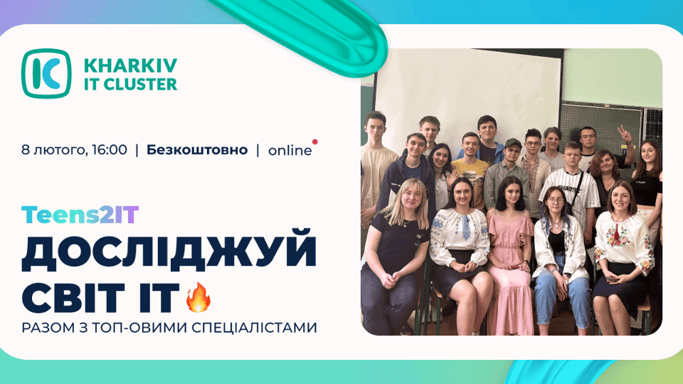 Ти студент коледжу або школяр?  Тоді цей проєкт саме для тебе! Тут ти отримаєш інформацію від фахівців про перспективи й можливості кожного ІТ-напряму й проведеш час із користю йзадоволенням!  Teens2IT —це серія безкоштовних інтерв'ю для школярів і студентів коледжів, зі спеціалістами різних посад і професій в IT галузі.
