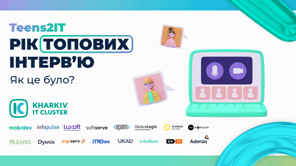 За рік Kharkiv IT Cluster провів 20 профорієнтаційних інтерв’ю з представниками різних ІТ-напрямів та професій. Висловлюємо вдячність компаніям MobiDev, Infopulse, Luxoft, SoftServe, EPAM, GlobalLogic, Sloboda Studio, WebMeridian, Olearis, Dysnix, Adenza, ITRDev, UKAD, Intellias, GoIT та Ergoserve за залученість у проєкт. Наші спікери надихали та надихають підлітків власним прикладом.Як це було?
