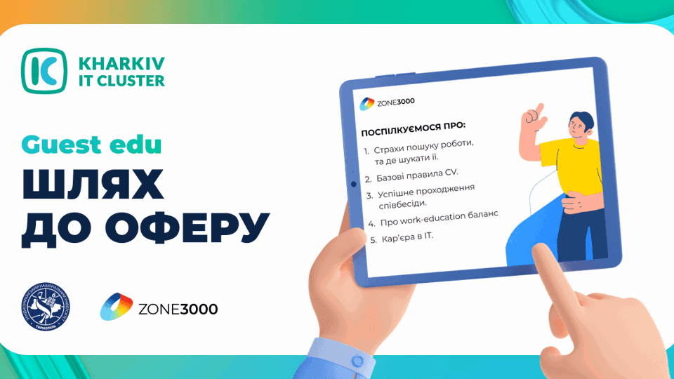 13 листопада Kharkiv IT Cluster провів гостьову лекцію разом із компанією ZONE3000 для студентів Західноукраїнського національного університету, на якій дізнались, що треба робити, щоб гарантовано отримати пропозицію на співпрацю. 🗣 Спікер лекції — Олег Опришко, Admin Recruiter & Event Manager у компанії ZONE3000, поділився цінними порадами щодо пошуку роботи, які допоможуть здійснити професійні мрії!