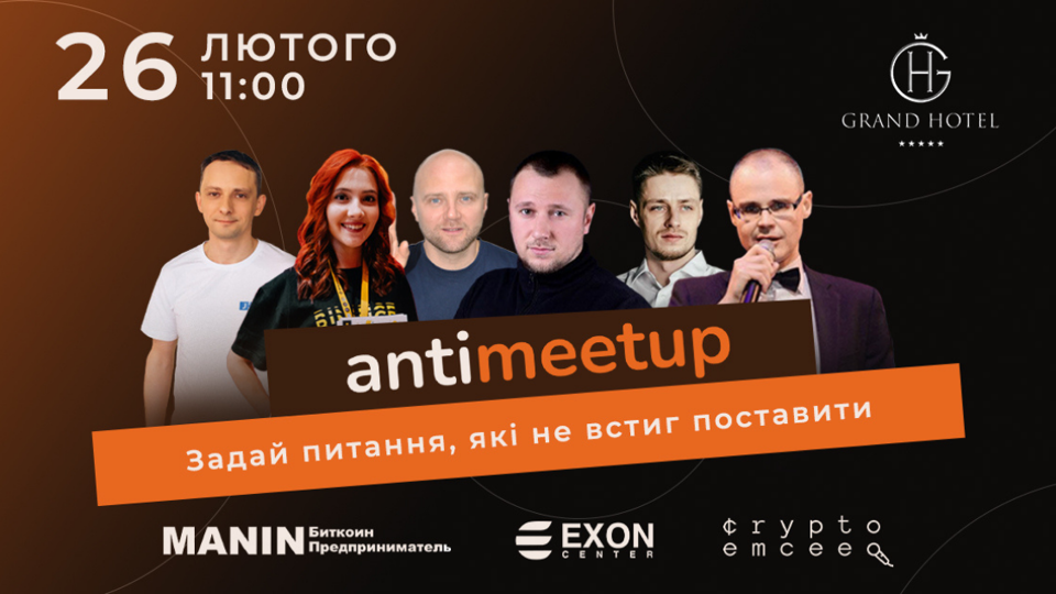 У 2022 році виповнилося 13 років з моменту появи біткоїну. За цей час Україна увійшла до ТОП-10 країн світу за рівнем блокчейн-розробки та масштабами використання криптовалют населенням. У країні очікується ухвалення закону про віртуальні активи, розпочато масове навчання громадян криптовалютам. Їхньому впровадженню в життя українців буде присвячено “Антимитап 2022”, який відбудеться 26 лютого у Львові. На відміну від традиційних конференцій, у фокусі "Антимітапа 2022" виявляться не спікери, а учасники. 90% часу буде присвячено відповідям на їхні запитання. Користувачі будь-якого рівня, від нульового до професійного, винесуть собі користь від відвідування конференції. Спікерами виступлять відомі українські професіонали, що представляють всі основні види рішень в області блокчейн: DeFi платформу Exon Center, криптобіржу Binance, криптокошелек Trustee Wallet, агентство зі створення невзаємозамінних токенів First NFT Agency, NFT-гру CryptoBrews NET, блокчейн Harmony Protocol, DAO та блокчейн-розробку, лігал-компанію для блокчейн-проектів Manimama та ін. ЗМІ зможуть отримати експертні коментарі про те, що відбувається в індустрії віртуальних активів України, матеріал для публікацій, записати аудіо- та відео-інтерв'ю. Місце проведення – конференц-зал Grand Hotel Lviv (пр. Свободи, 13). Офіційна програма пройде з 11 до 19 год і продовжується неформальним спілкуванням спікерів та учасників у душевній атмосфері зимового вікенду в історичному центрі Львова.