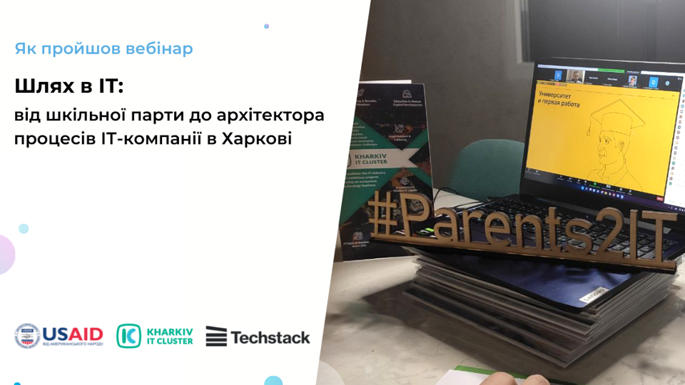 10 листопада в рамках клубу Parents2IT відбувся онлайн-мітап «Шлях в ІТ: від шкільної парти до архiтектора процесів ІТ-компанії у Харкові». Спікером був Дмитро Штапаук Business Process Architect в компанії Techstack!